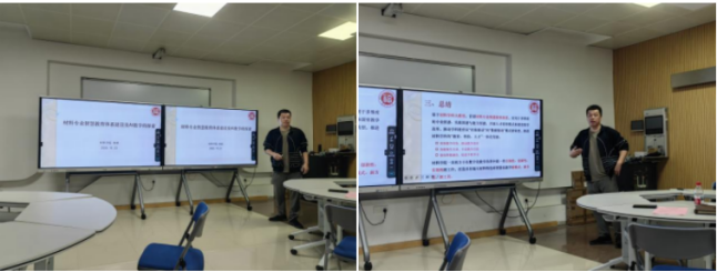 座谈会伊始,材料学院林枞副院长以“材料专业智慧教育体系建设及AI教学探索”为主题,阐述了材料专业智慧教育体系的建设过程,并结合所授课程分析了智慧教育体系在课堂教学中的应用,分享了数智技术在优化教学内容、重构教学流程、提升课堂互动等方面的实践心得。他强调,数智课程建设不仅是技术工具的引入,更是教学理念与专业知识体系的全方位升级。