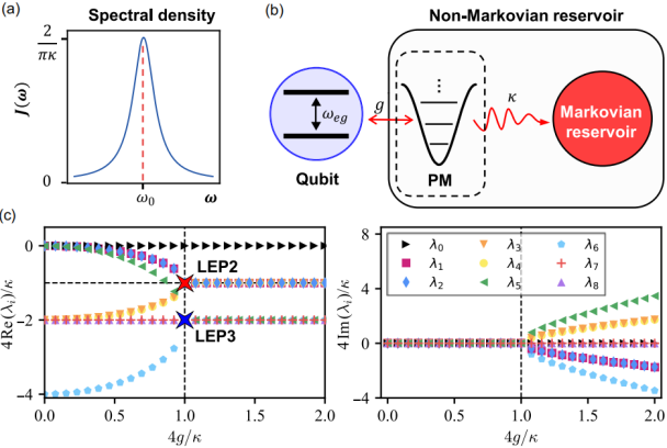 团队工作将量子奇异现象的实验研究从马尔科夫热库拓展到非马尔科夫热库,为实验研究马尔科夫开放系统中所无法触及的非厄米现象开辟了研究途径,研究结果发表于Physical Review Letters 135, 230203(2025)。