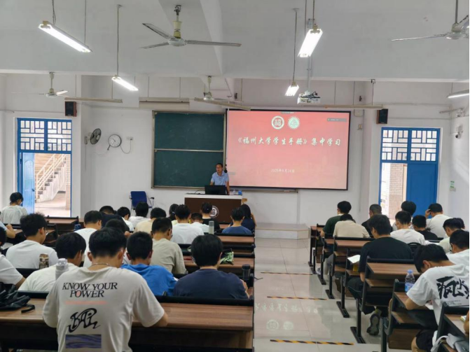 为使2025级新生全面了解学校规章制度,尽快适应并规划好大学学习与生活,入学教育周期间,新生辅导员组织新生开展了《学生手册》的集中专题学习。学习中,新生辅导员首先强调了学习《学生手册》的重要性,指出《学生手册》是学生在校期间的学习、生活和行为准则,是维护正常教育教学秩序、保障学生合法权益的根本依据,其内容对于未来四年的成长与发展至关重要。随后,辅导员结合往年实例,对手册中的重点章节进行了深入浅出的解读,内容覆盖学生管理规定、学籍管理、奖惩制度、宿舍管理、安全纪律等领域。