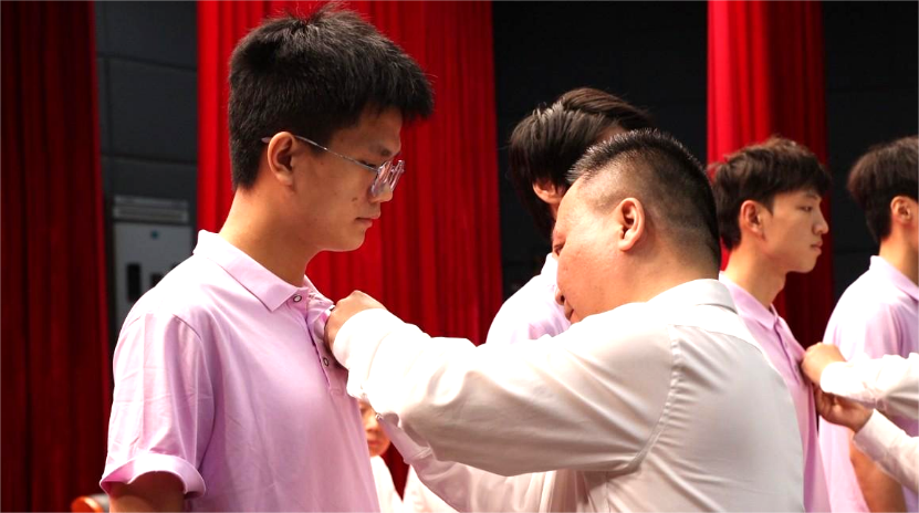 开学典礼上,卢孝强副校长、魏金明书记为2025级研究生新生代表佩戴校徽,全体新生也在座位上同步自行佩戴校徽。这枚小小的徽章,不仅是一份身份的认证,更是一份责任的交付。自此,每一位新生的脉搏都将与福州大学、与物信学院同舟共济、同心同行,又一股蓬勃的青春力量在此刻汇入,共同开启与时代共振的奋斗新篇。