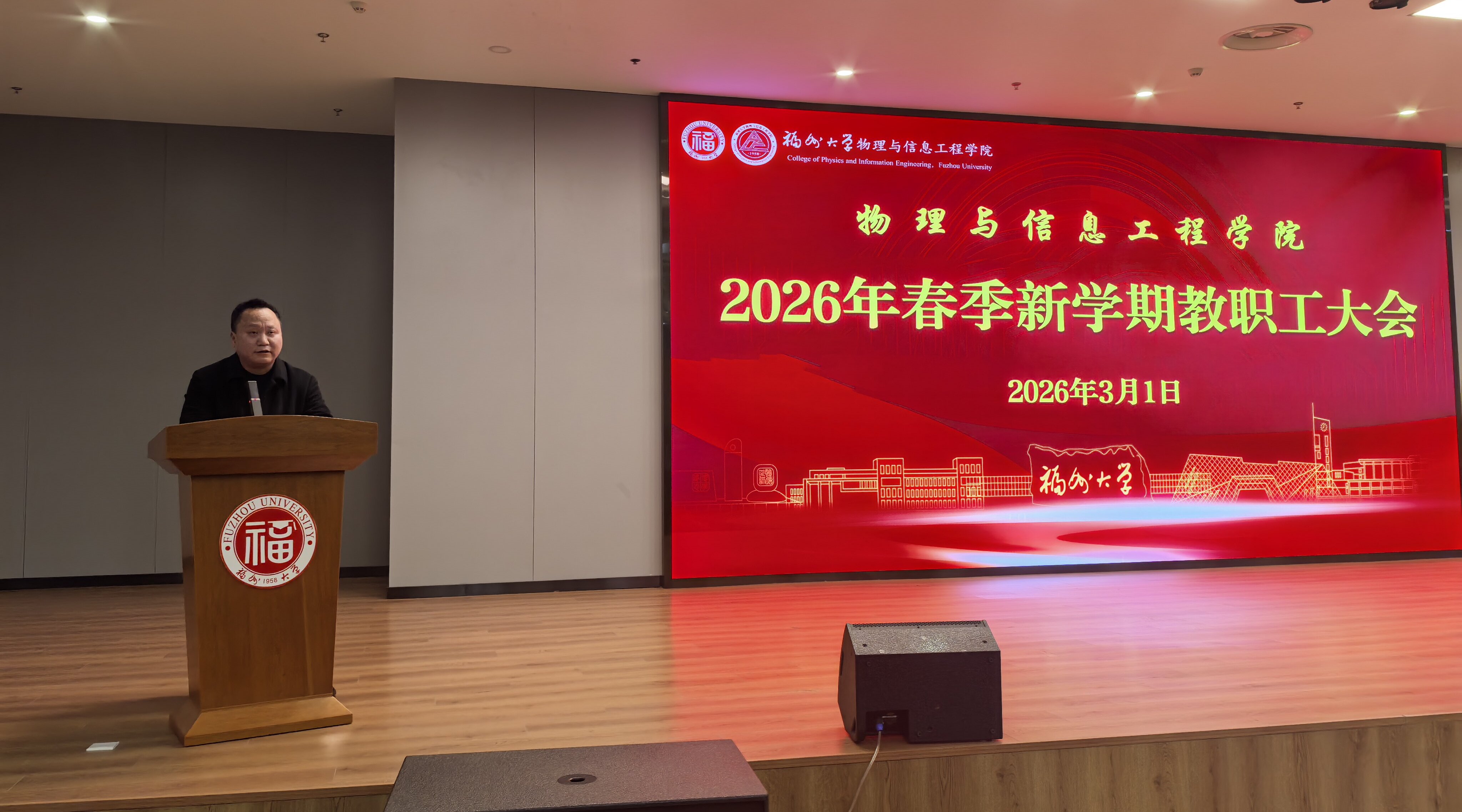 3月1日下午,物信学院在旗山校区晋江楼一楼报告厅召开2026年春季新学期教职工大会,全体教职工参加会议。学院党委书记魏金明主持会议。