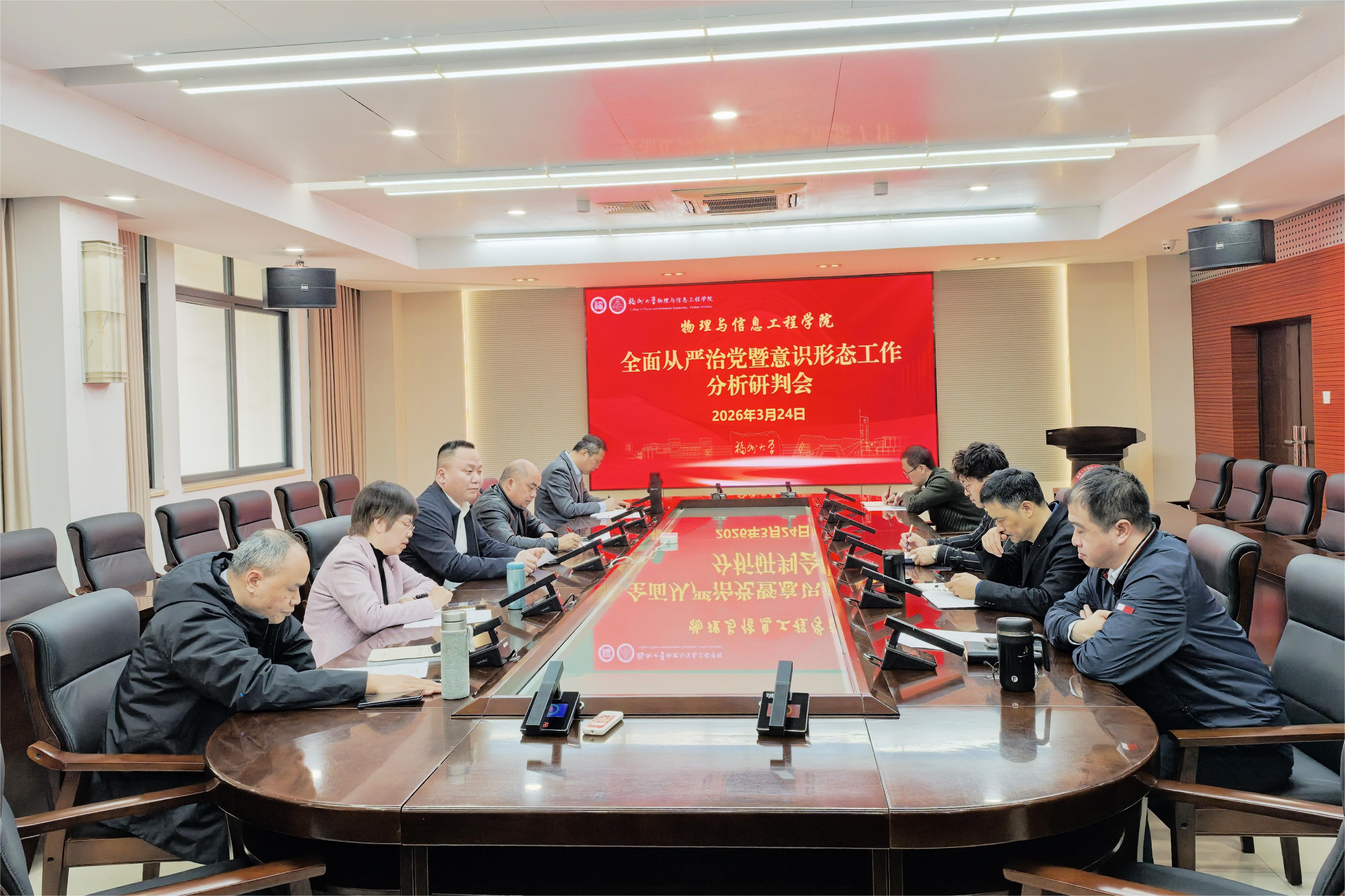 3月24日,物信学院召开2025年下半年全面从严治党暨意识形态工作分析研判专题会议。学院党政班子成员参加会议,学院党委书记魏金明主持会议。