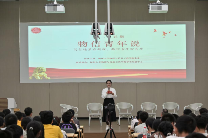 2025年9月25日,由福州大学物理与信息工程学院党委主办、学生发展中心承办的《物信青年说》第二十五期——“笃行逐梦启新程,物信青年绽芳华”在铜盘校区科报厅B举行。物信学院党委郑志刚副书记以及各年级辅导员老师出席活动,物信学院2025级全体本科生通过线上和线下相结合的...